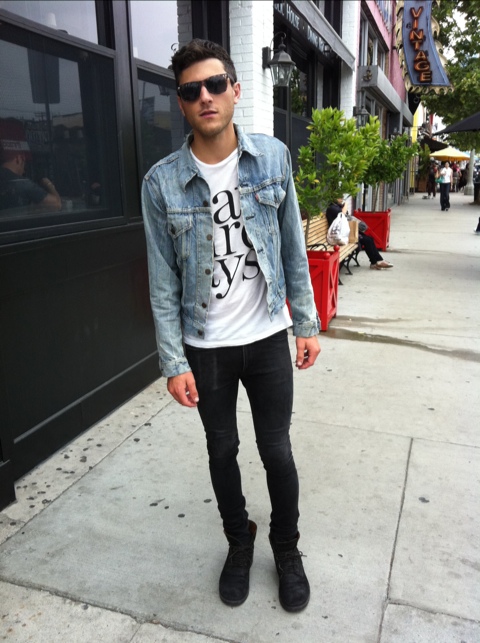 We spotted this guy while chasing away the June Gloom blues with some amazing Dark n’ Stormy cocktails at The Village Idiot in Los Angeles. Josh Tomme was kind enough to let us snap this pic of him in this dope denim on denim creation. Josh is here in a Levi’s jacket and Them jeans. He assures us he looks even hotter in his lighter wash denim jeans. Hopefully we’ll run into him again soon and find out!