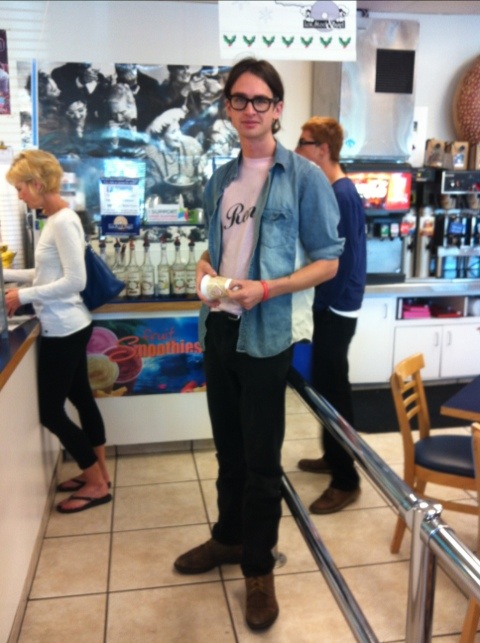 Double denim is everywhere! I saw another Canadian Tuxedo while picking up some breakfast at Lox Stock & Bagel in Scottsdale this morning. This guy was rocking some vintage denim – on top and bottom. Loving the multipanel shirt, complete with a little embroidering. Love it. I’ll be rocking my own Canadian Tux when I go horseback riding in a bit. Stay tuned!