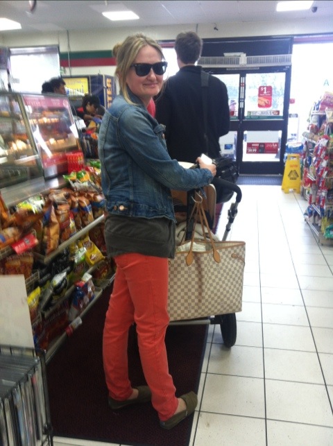 While waiting in line to buy a losing Mega Millions ticket last Friday, I had the pleasure of meeting hot mama Diane Case in an H&M jacket and colored Zara jeans.