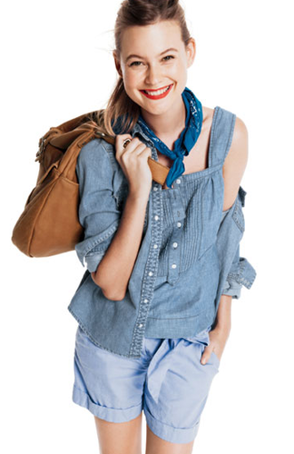 So what if the thermostat in my car reads 101 degrees. That’s not stopping this die-hard denim fan from jumping on her hot bike and cruising around the mean streets of LA. Me, I’m sticking to tank tops, cotton lounge shorts and the AC that blast from my car. Or maybe chambray, which makes for the perfect hot weather Canadian Tuxedo.