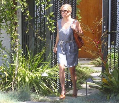 Here she goes again! The newlywed Reese cannot get enough of the denim-on-denim look that seems to be rocking the world. Last month we caught her in Paris donning a Canadian Tux, now she’s been seen in a summery chambray dress. The Stir, a trend blog on CafeMom, posted several denim-on-denim looks, bringing new meaning to the term “mom jeans.”