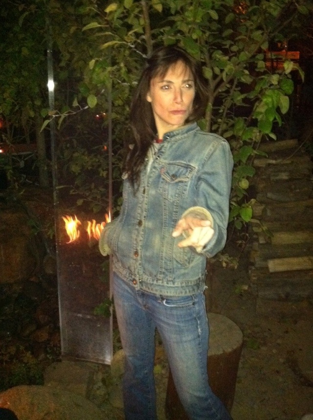 Even without his robe, Kevin Lee Light looks angelic. I ran into long-time pal and subject of another one of my blogs I Saw Jesus in LA at the Sunset Strip Market in West Hollywood last Thursday night. While Jesus was out and about in his plain clothes, I stuck to my denim on denim uniform: James Jeans Twiggy denim leggings in coral I picked up at Rowe in Columbus, Ohio and my Gap jean jacket I still have from high school.