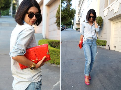 The ever-beautiful (especially in a Canadian Tuxedo) Kristen Tischhauser stunned (again) in a denim shirt and jeans – both from Madewell – and Ash shoes today in Downtown Los Angeles. Keep, ’em coming, girl. You can do no wrong.