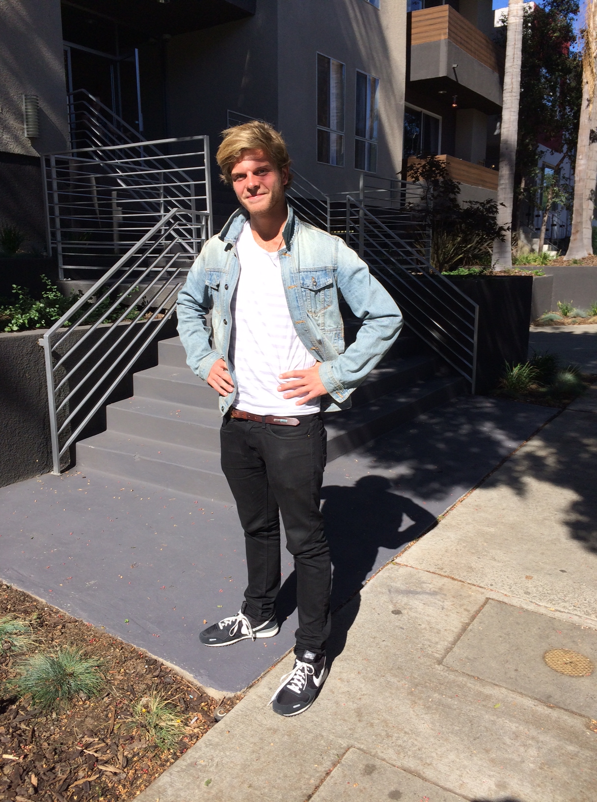 Talk about timing! Just minutes after doing a mini photo shoot for my Wall Street Journal front page story with my friend and neighbor, actress/model Sandra Lerga, I ran into actor Ross Anderson who was also rocking a sick Canadian Tuxedo. Pictured above is Ross in Nudie jeans and a TOPMAN jacket.
