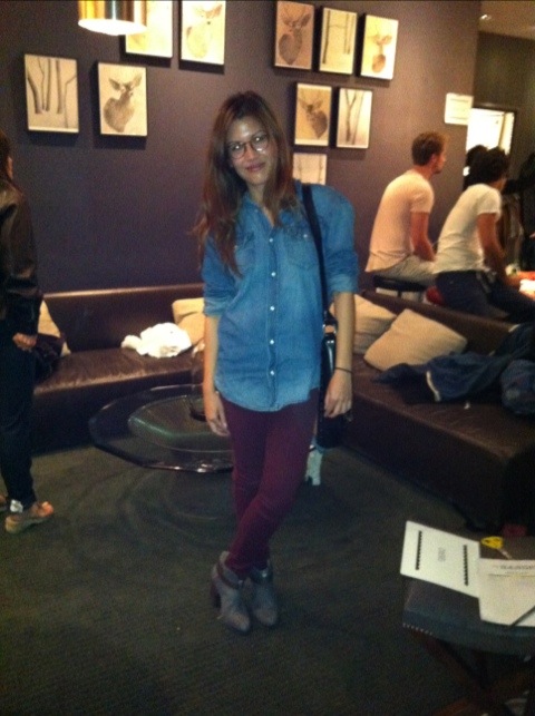 I can’t say I’m terribly shocked to have seen so much double denim amongst the fashion set at Palihouse tonight. Is there any better look? Here is Natalie rocking ampersand brands head to toe: H&M denim shirt, Rag & Bone boots and Rich & Skinny jeans.