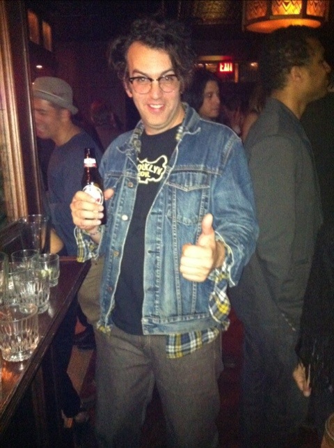 Here is Bill “Smitty” Smith, drummer in the band Truth & Salvage Co., rocking out in a Canadian Tuxedo (Gap jacket and Levi’s jeans) at The Spare Room in the Hollywood Roosevelt Hotel. Truth & Salvage can be seen at the Troubadour on March 24 at their farewell show before they relocate the band to Nashville. With indie denim powerhouse Imogene + Willie putting out some of the best double denim looks, we think Smitty will feel right at home.