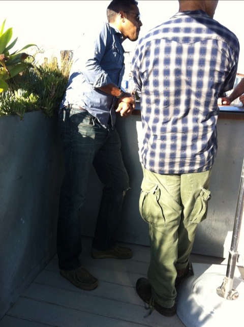 We saw this guy at the rooftop lounge at Hotel Erwin in Venice Beach. Couldn’t make out the jeans, but he was wearing a dope denim shirt by Scotch & Soda.